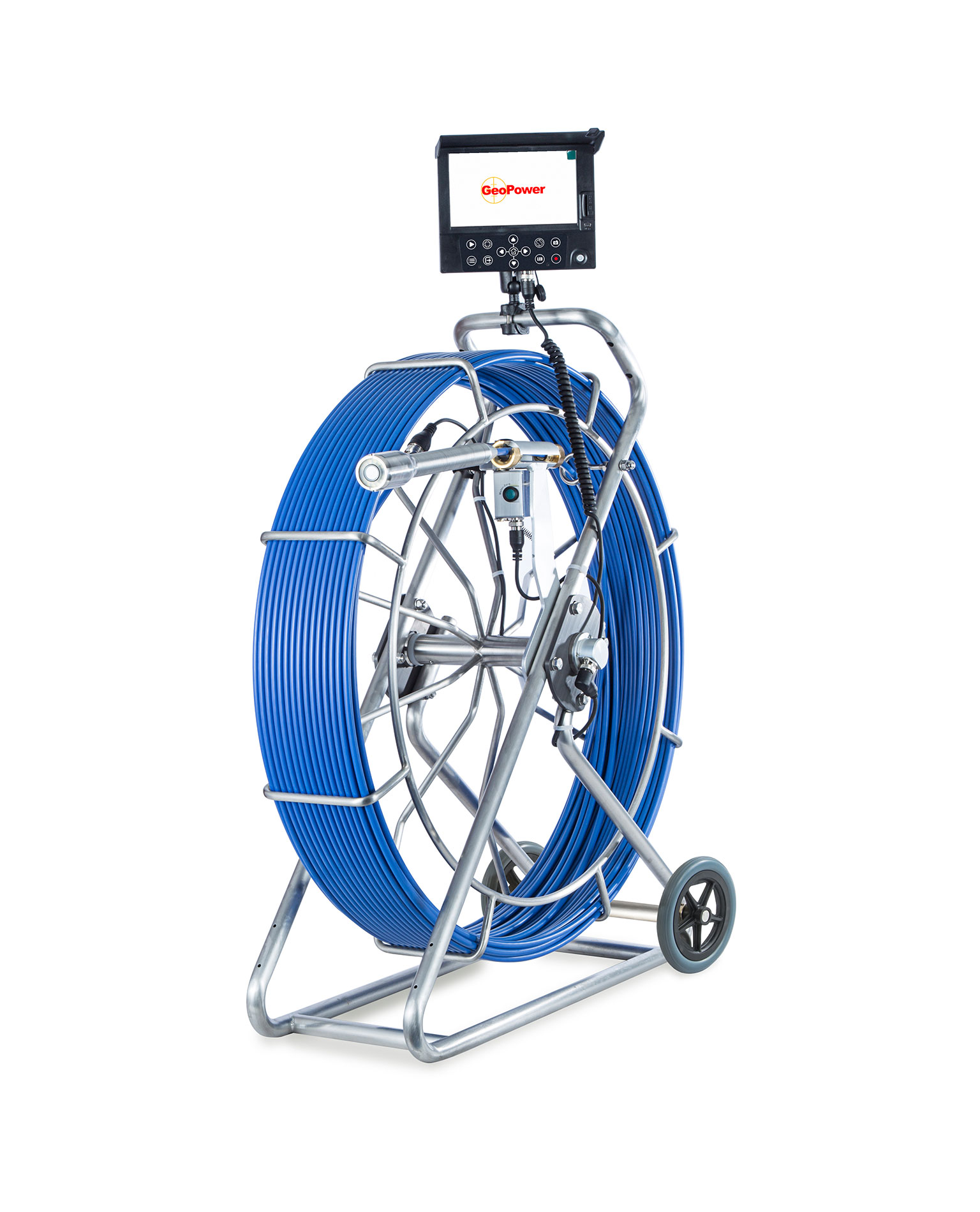 GeoPower kamerajärjestelmä pienellä 38mm tasaavalla kamerapäällä rakenteiden, viemäriden, hormien ym tutkimiseen.